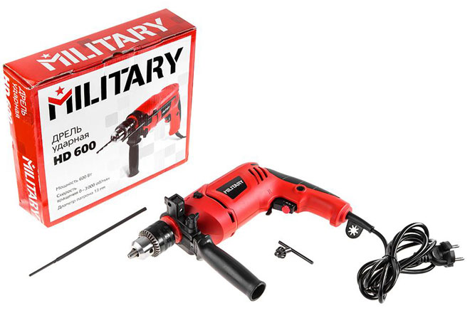 MILITARY HD600 – ударная дрель для домашней мастерской. Сверлит дерево, металл, кирпич, бетон и камень.