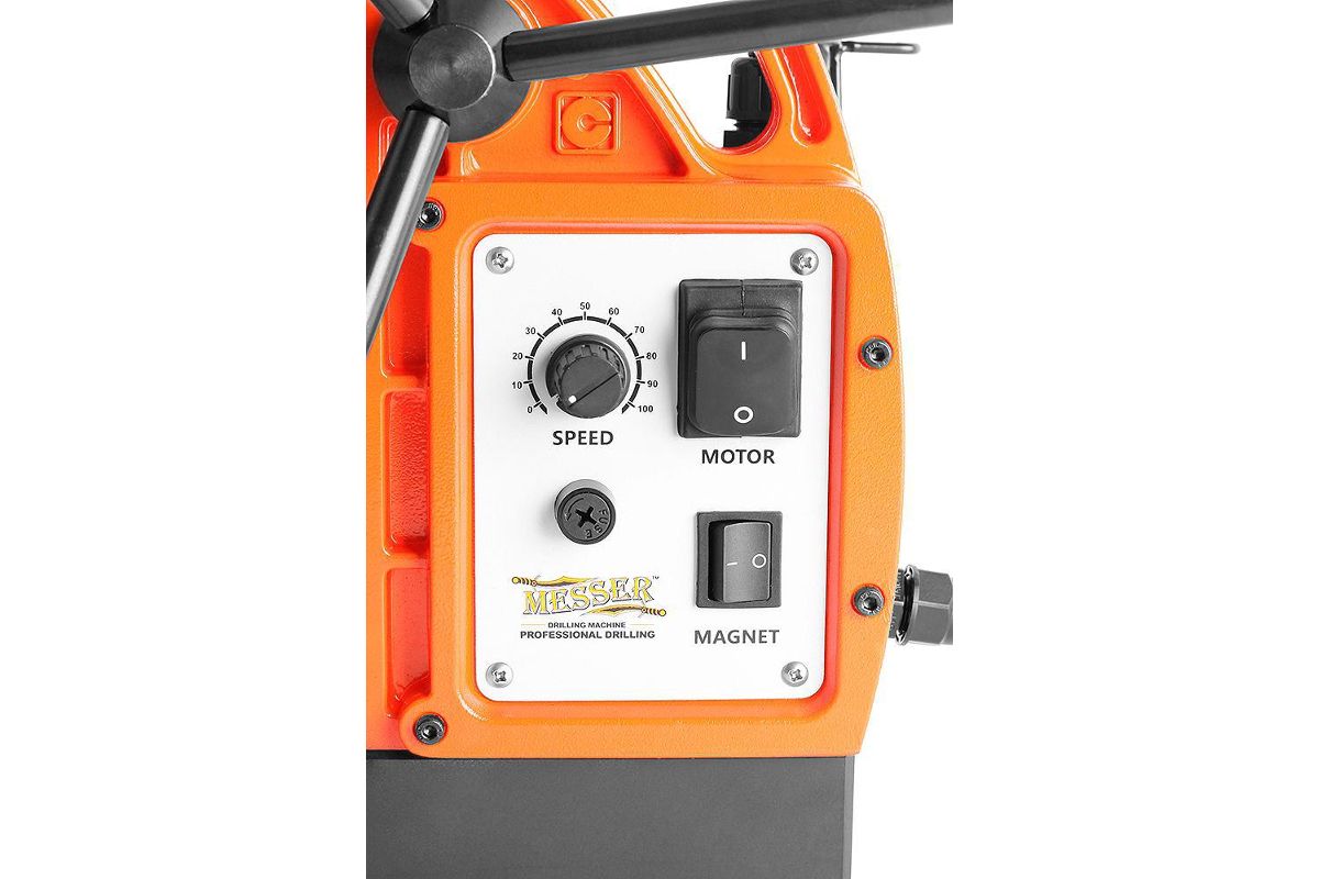 MESSER MDM-32 – магнитный сверлильный станок для работы с толстым листовым металлом или с металлоконструкциями. Работает с кольцевыми свёрлами типа HSS и TCT диаметром до 35 мм и длиной до 55 мм. С адаптером может использоваться со спиральными свёрлами. Применяется в строительстве и промышленности.