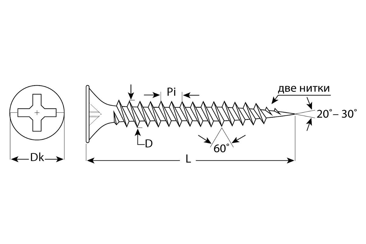 - Резьба с частым шагом разработана для крепления гипсокартона к металлическим профилям;