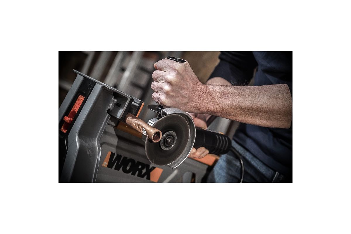 Сетевая угловая шлифмашина (болгарка) WORX WX711 220V — мощный и компактный инструмент для обработки различных материалов, сопоставимый с более дорогостоящими аналогами. Легко справится как с деревом, так и с металлом, камнем, пластиком и многими другими материалами. Идеально справится с отрезными работами, шлифовкой, пилением и даже полировкой многих поверхностей. Данная модель угловой шлифмашины оборудована удобной антивибрационной боковой ручкой, за счет которой выполнять работы гораздо комфортнее и удобнее. Алюминиевый корпус редуктора обеспечивает долговечность использования инструмента, а высокая частота оборотов позволит справится с любой сложностью.
