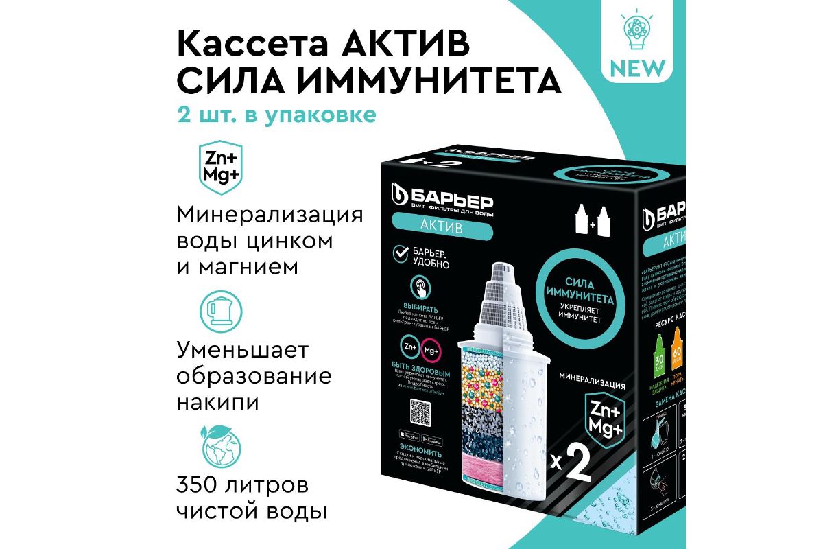 Базовая очистка и обогащение воды цинком и магнием. Цинк укрепляет иммунитет. Магний помогает бороться со стрессом. Очищает водопроводную воду от хлора и других вредных примесей, препятствует образованию накипи в чайнике, удаляет посторонние привкусы и запахи. Имеет рабочий ресурс до 350 литров. В упаковке 2 кассеты, которые подходят к любому фильтру-кувшину БАРЬЕР. Один компактный фильтр заменяет десятки тяжелых бутылок с водой.