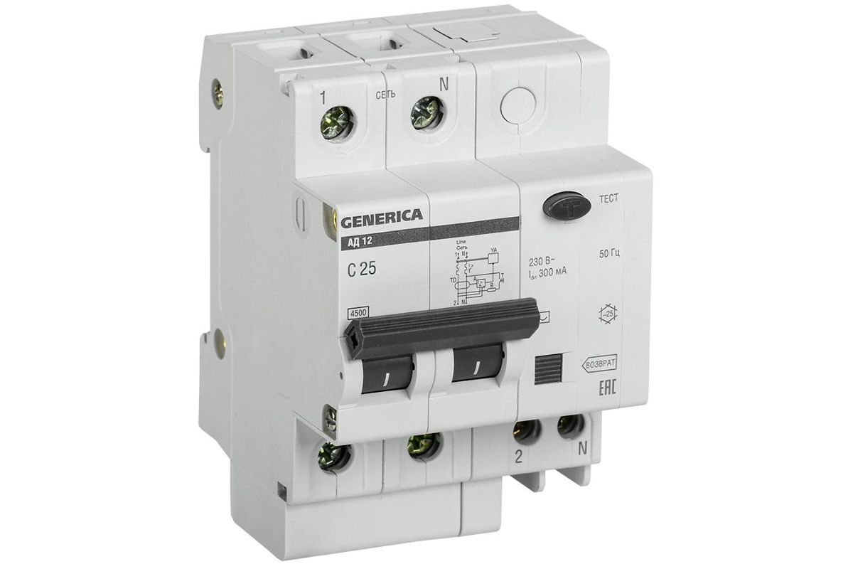 Выключатель автоматический дифференциального тока 2п 25А 300мА АД12 GENERICA IEK MAD15-2-025-C-300 Быстродействующие защитные выключатели обеспечивают: