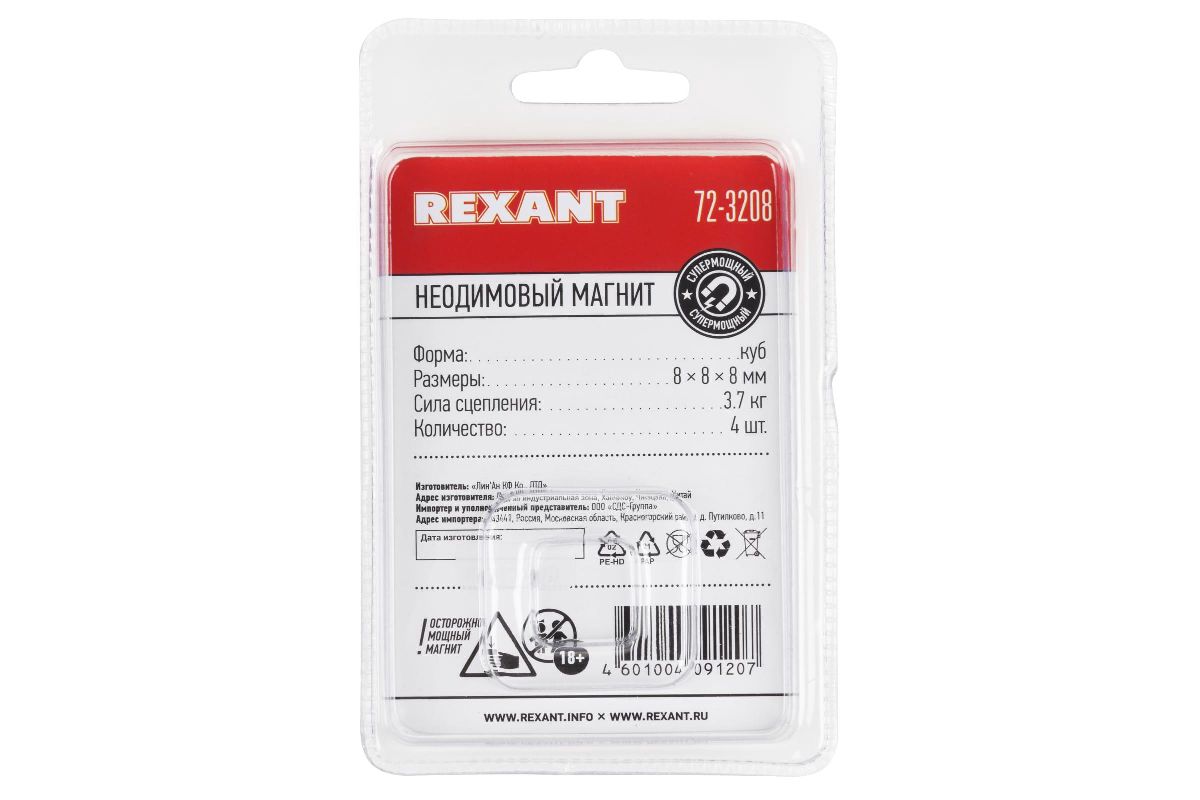 - Размер магнита: 8х8х8 мм;